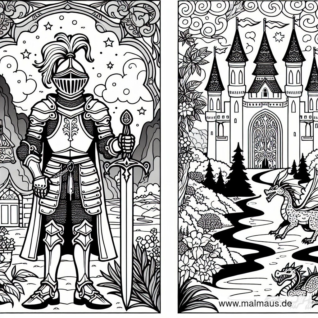 Mit jedem Pinselstrich entfaltet sich eine Welt voller Wunder, tapferer Ritter, fliegender Drachen und geheimnisvoller Kreaturen. Taucht ein in dieses märchenhafte Abenteuer und lasst eurer Fantasie freien Lauf. Ein Abenteuer für mutige Ritter und kreative Künstler wartet darauf, von euch entdeckt zu werden!