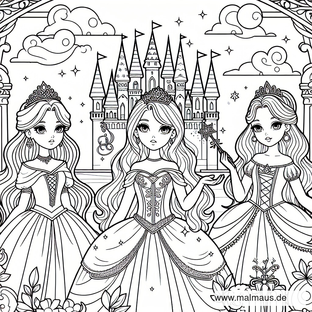 Beim Ausmalen dieser magischen Szenerie werdet ihr nicht nur Spaß haben, sondern auch eure Vorstellungskraft und Kreativität fördern. Es ist eine Welt, in der alles möglich ist und in der eure Farbwahl die Geschichte lenkt. Bereitet euch darauf vor, in eine Welt einzutauchen, in der Prinzessinnen und Magie Hand in Hand gehen und jeder Strich auf dem Papier ein Teil des großen Zauberwerks wird.