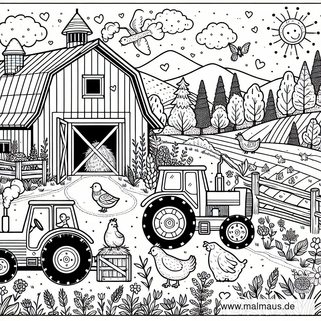 Willkommen in einer Welt, wo die Sonne immer golden über den sanften Hügeln des Bauernhofs aufgeht, wo Tiere sprechen können und jede Blume eine Geschichte zu erzählen hat. Heute entführen wir euch in ein zauberhaftes Reich, in dem eure Stifte die mächtigsten Zauberstäbe sind. Wir präsentieren euch: ‚Ausmalbild Bauernhof: Märchenhafte Naturmotive zum Ausmalen‘. Ein Bild, das nur darauf wartet, von euren lebendigen Farben zum Leben erweckt zu werden.