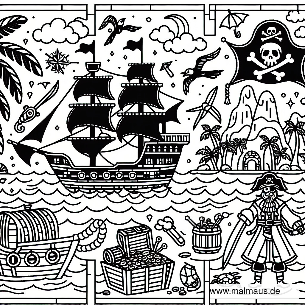 Entdecke die verborgenen Schätze mit unserem Piraten-Ausmalbild!