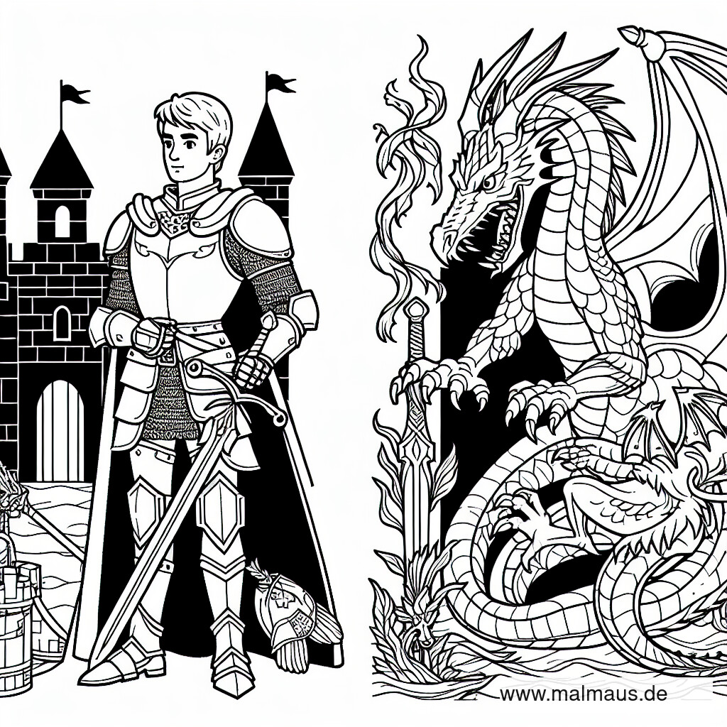 Abenteuer im Märchenland: Ein magisches Ritter-Ausmalbild für kleine Künstler