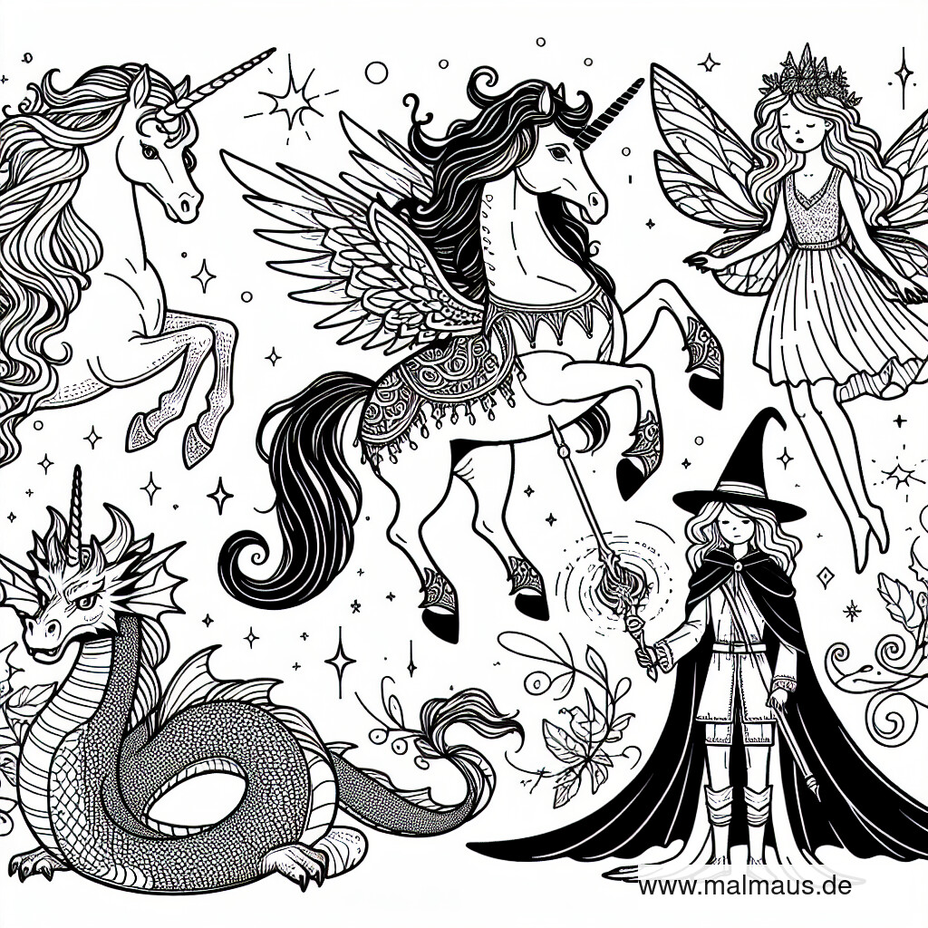 Zauberwelt zum Ausmalen: Entdecke Magische Wesen und Ihre Niedlichen Gefährten!