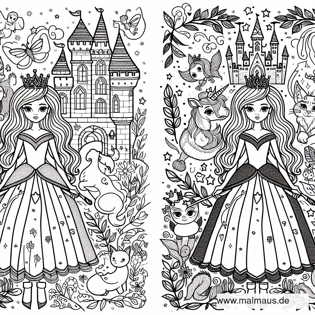 Geheimnisvolle Prinzessinnen und ihre tierischen Gefährten: Ein Ausmalabenteuer